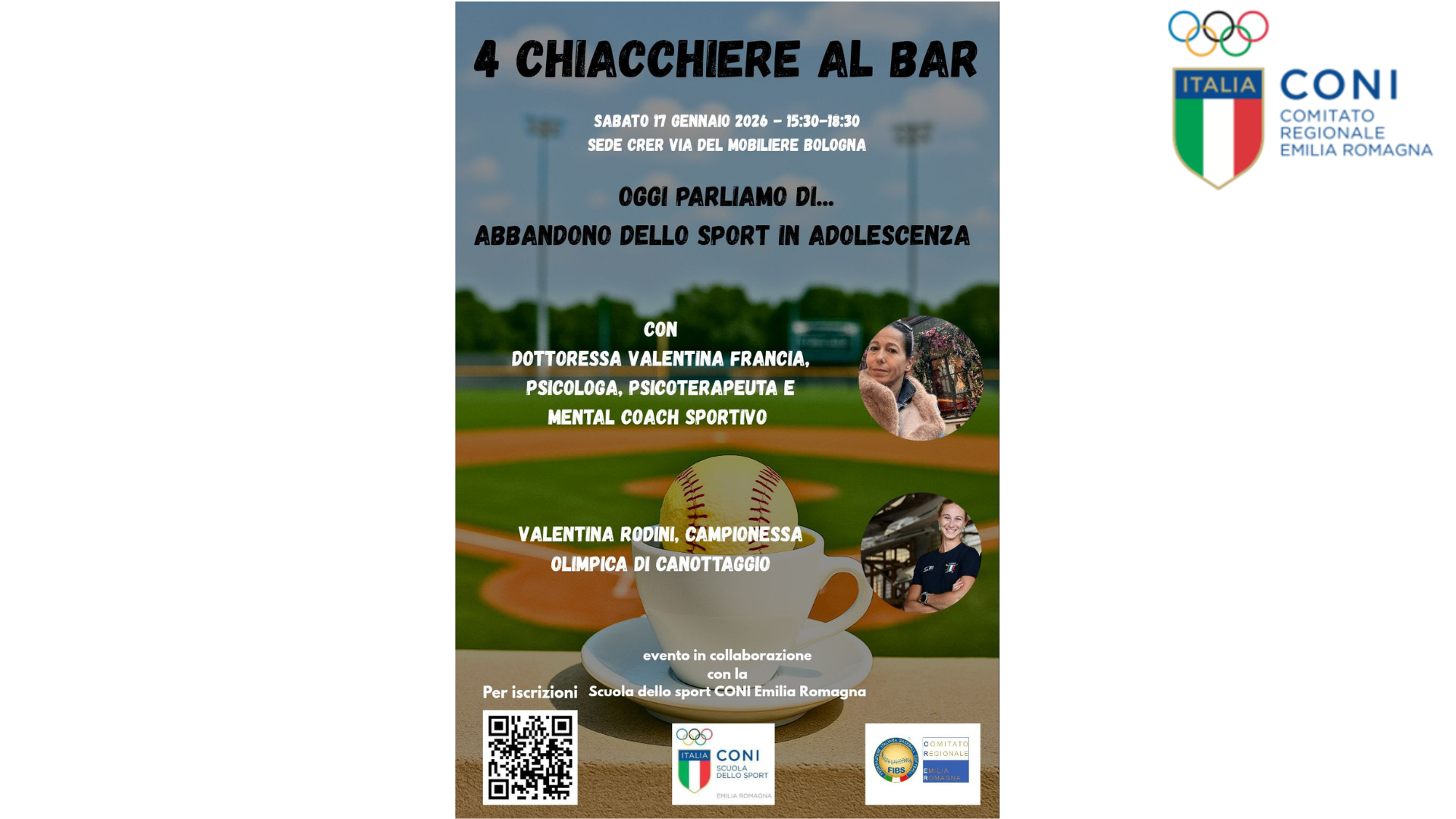 Il Comitato Regionale Emilia Romagna FIBS, in collaborazione con la Scuola dello Sport del CONI - Comitato Regionale Emilia Romagna, organizza un incontro formativo dedicato a tecnici, dirigenti e atleti.